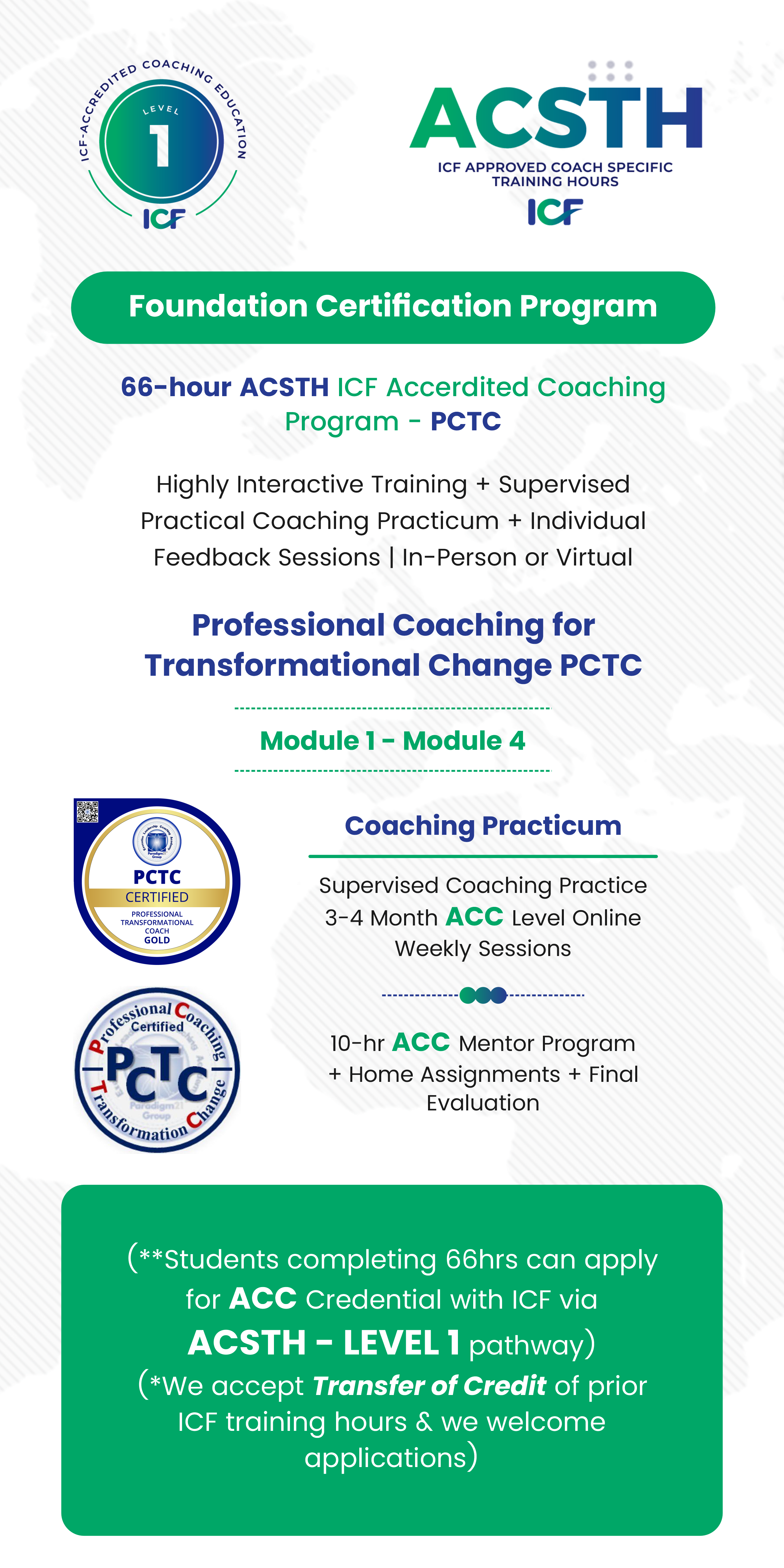 ● ICF Level 1 accreditation for ACC preparation.